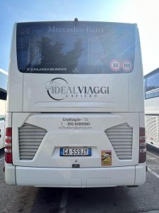 Mercedes 632 01 Tourismo RHD, anno 2012, posti 51+1+1, cv 410, Euro 5 con wc, cuccetta, navigatore, monitor, impianto radio, DVD, con prese USB, prese 220 V anteriori e porta centrale, interni in tessuto, appoggiatesta e bordini in ecopelle, cambio automatico 8+retromarcia, 650.000 km.